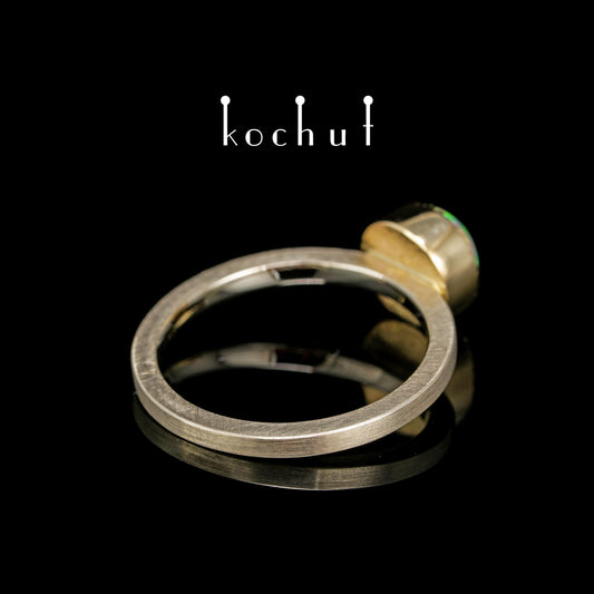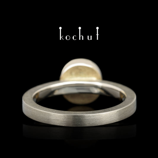 Jupiter — Ring aus Weiß- und Gelbgold mit Opal