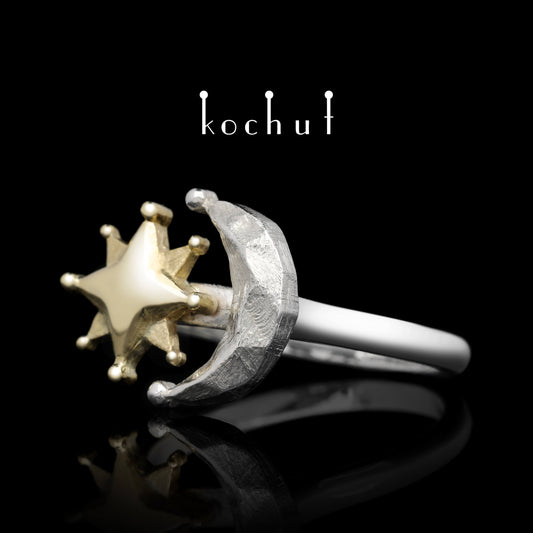 Sonne und Mond — Ring aus Gelbgold und Silber
