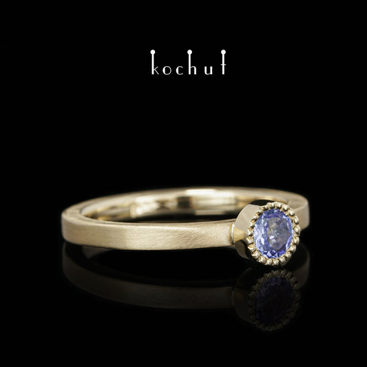 Neptune — Gelbgoldring mit Kornblumen-Saphir