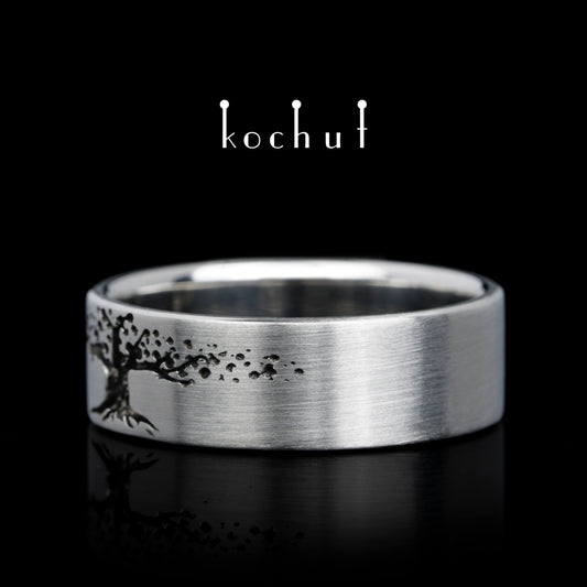 Baum des Lebens — Platin-Ehering mit schwarzem Rhodium beschichtet