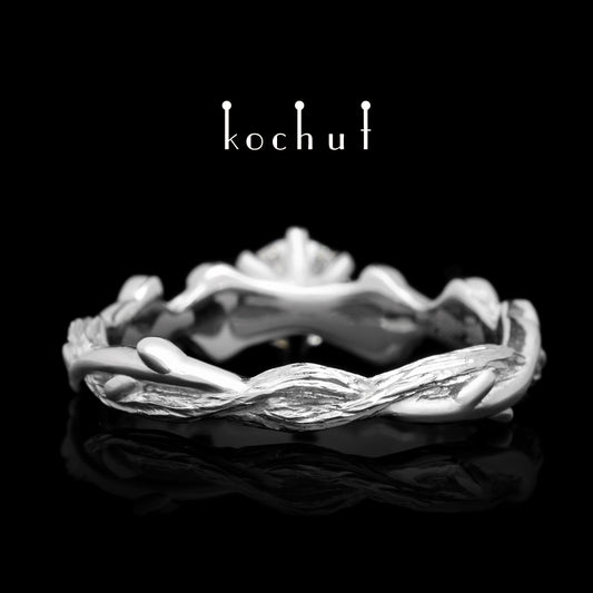 Satellit — Platin-Verlobungsring mit einem Diamanten