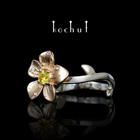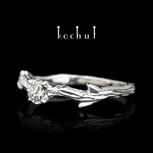 März Zweig — Ring aus Weißgold mit Diamant und mit weißem Rhodium überzogen