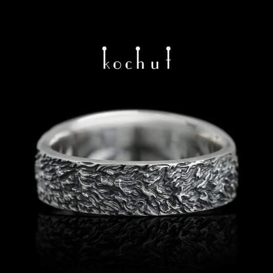 Dunkler Wolf — Ring aus oxidiertem Silber