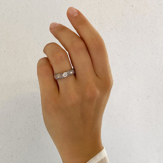 Standhaftigkeit — ein Ring aus Weißgold, rhodiniert mit Weißrhodium