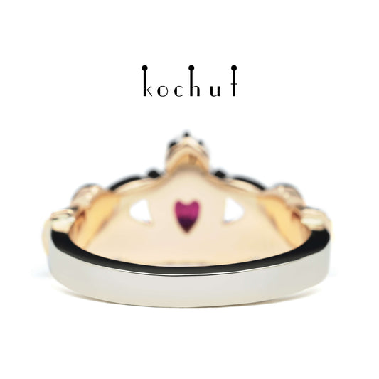 Claddagh: Liebe — Verlobungsring aus Rot- und Weißgold mit Rubin und Diamant