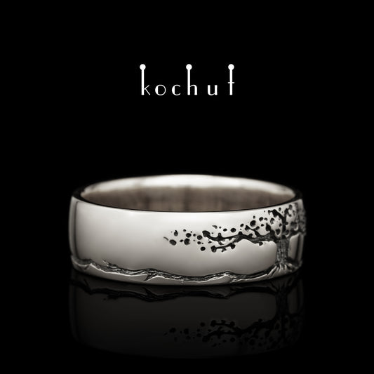 Waldauge mit Baum des Lebens — ein Ring aus oxidiertem Silber und Gelbgold