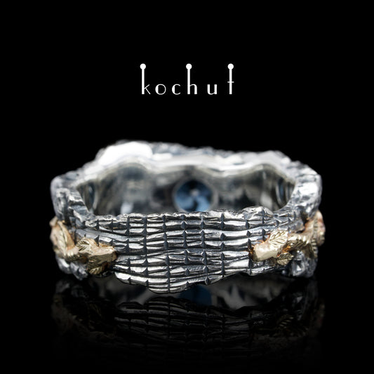 Kraft des Lebens — Ring aus oxidiertem Silber und Gelbgold mit Topas