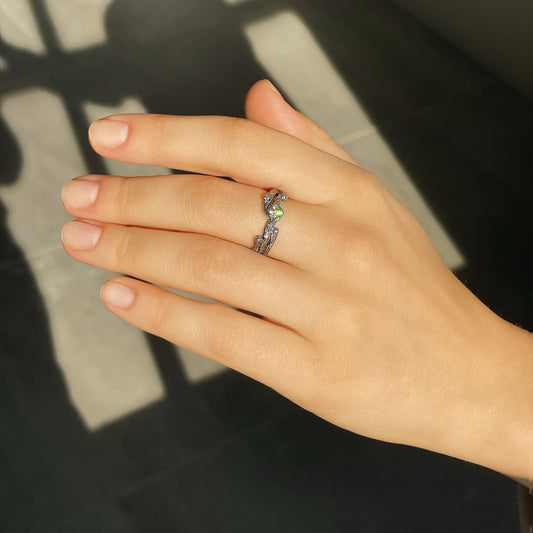 Zweig — Weißgoldring mit Chrysolith und weißem Rhodium