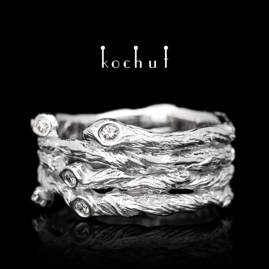 Breiter Zweig — Weißgoldring mit Diamanten
