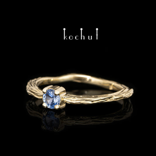 Winterzweig — Ring aus Gelbgold mit Kornblumen-Saphir