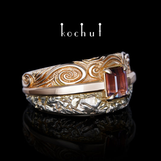Geheimnisse des Universums — Ring aus Weiß- und Rotgold mit polychromer Turmalin