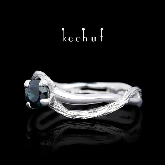 Lignum — Verlobungsring aus Weißgold mit Saphir, rhodiniert mit weißem Rhodium