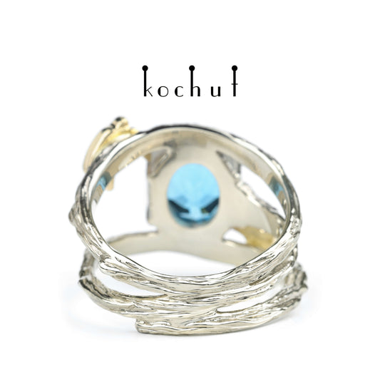 Schwalben — Ring aus Weiß- und Gelbgold mit Topas