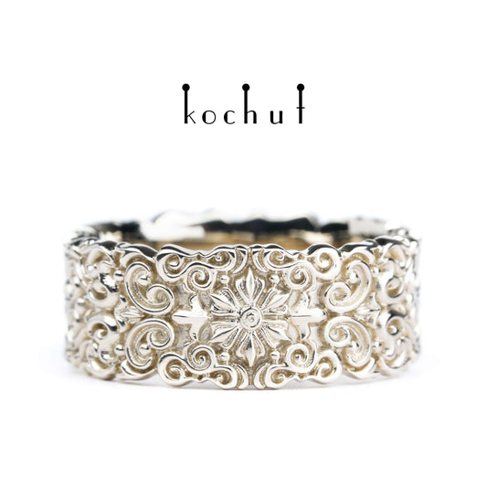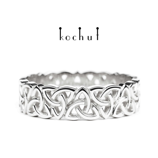 Keltisches Spitzenmuster — Ring aus Weißgold, beschichtet mit weißem Rhodium