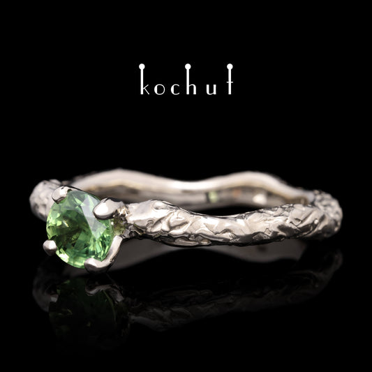 Valkyrie Zärtlichkeit — Ring aus Palladium 18K Gold mit grünem Saphir