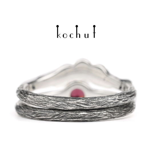 Erstes Treffen — Ring aus oxidiertem Silber mit Granat