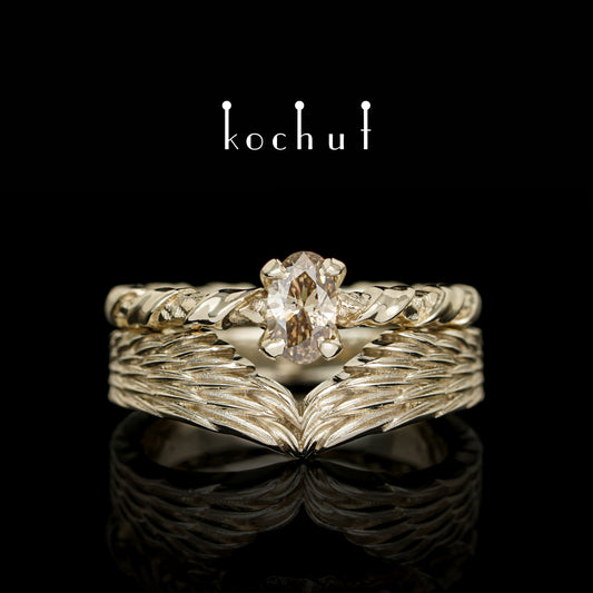 Zärtlichkeit Valkyrie — Verlobungsring aus Palladium und 18-karätigem Gold mit einem Diamanten