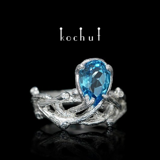 Galadriel — silberner Ring mit Topas, überzogen mit weißem Rhodium