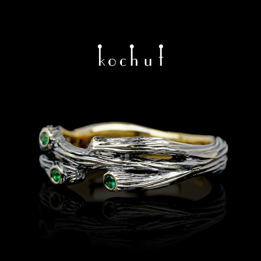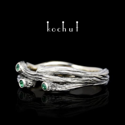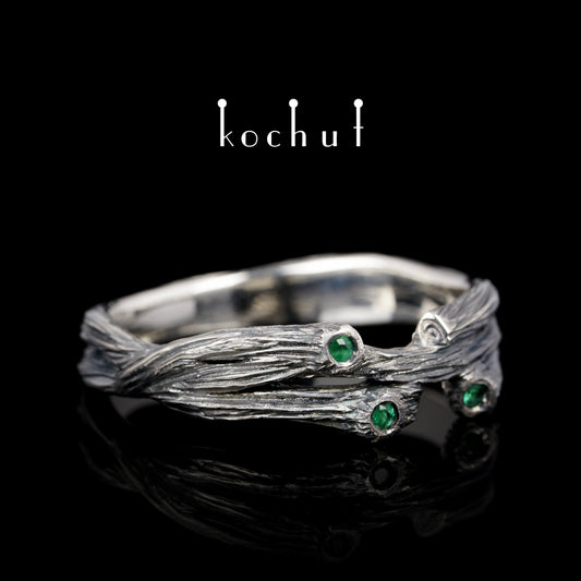 Zweig: Revival — Ring aus oxidiertem Silber mit Smaragden