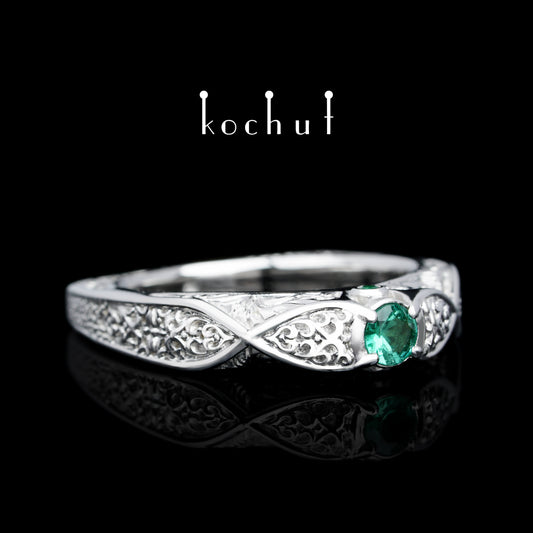 Versailles — Verlobungsring aus Weißgold mit Smaragden, überzogen mit weißem Rhodium