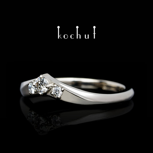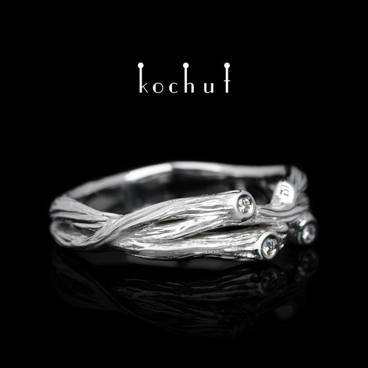 Wald-Möbius-Band — Ehering aus oxidiertem Silber mit Diamanten