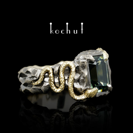 Verlockung — Ring aus Weiß- und Gelbgold mit Turmalin, überzogen mit schwarzem Rhodium