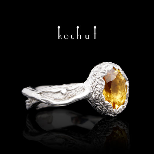 Quelle des Lebens — Ring aus Silber mit Citrin, überzogen mit weißem Rhodium