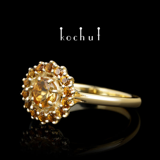 Wärme der Erinnerungen — Verlobungsring aus Gelbgold mit Citrinen