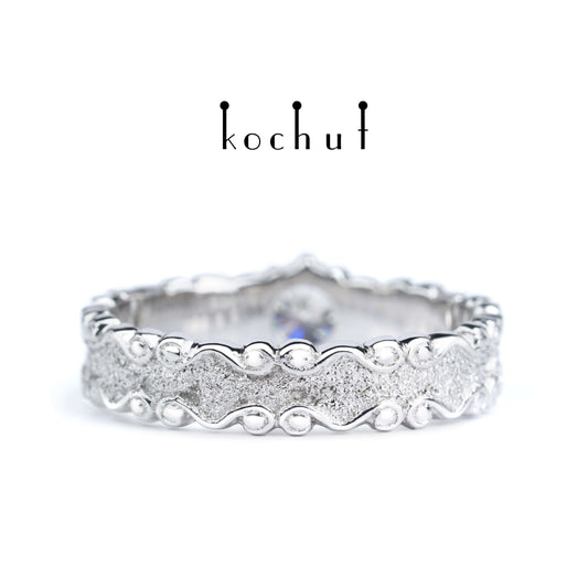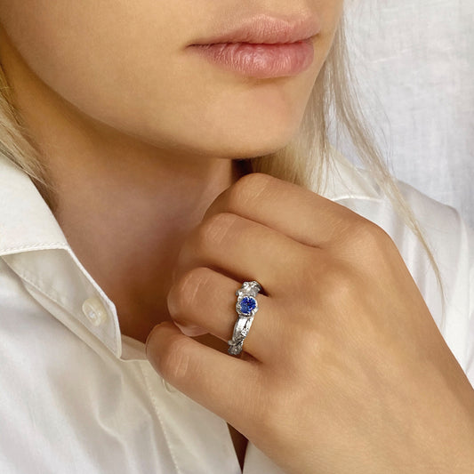 Atlantis — Verlobungsring aus Weißgold mit Saphir und Diamanten, beschichtet mit weißem Rhodium