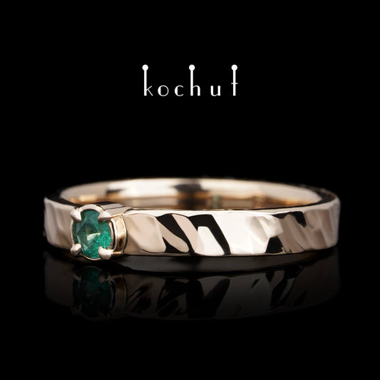 Regenbogen-Kaleidoskop — Ring aus Rotgold mit Smaragd