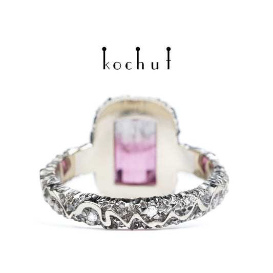 Geheimnisse des Universums — Ring aus Weißgold mit Turmalin und Diamanten, überzogen mit schwarzem Rhodium