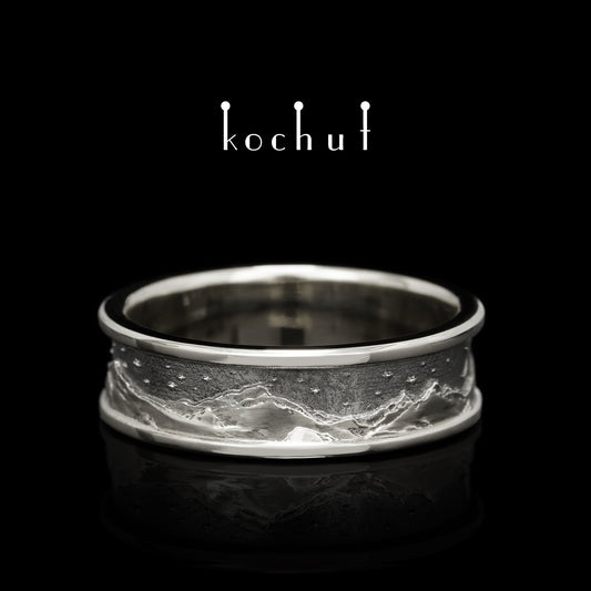 Peaks of Love — Ehering aus oxidiertem Silber