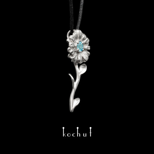 Kamille — silbernes Anhänger mit Topas, überzogen mit weißem Rhodium