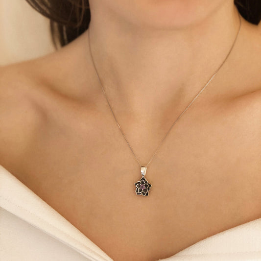 Herz-Lotos — Anhänger aus oxidiertem Silber mit Amethyst