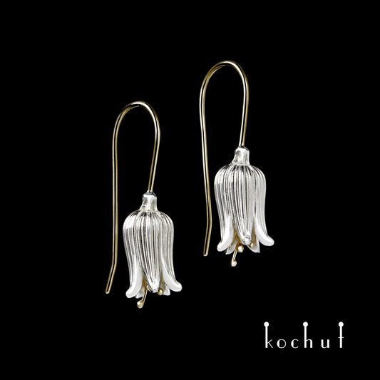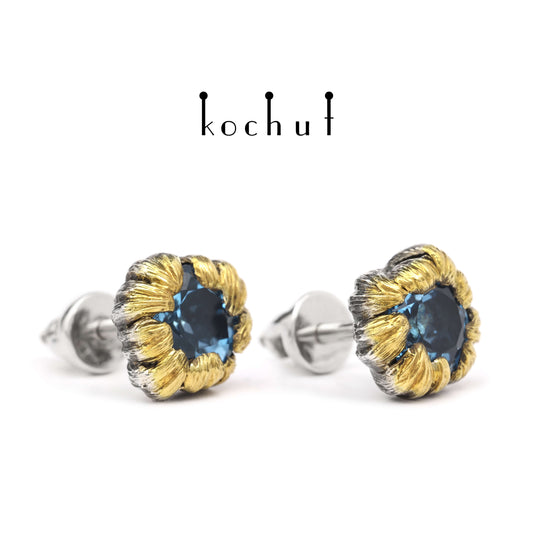 Pfingstrosen — Ohrringe aus oxidiertem Silber mit Topasen und Vergoldung