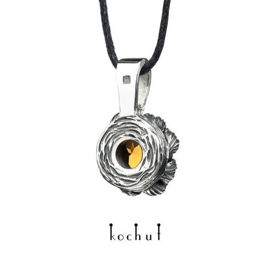Pfingstrose — Anhänger aus oxidiertem Silber mit Citrin und Vergoldung