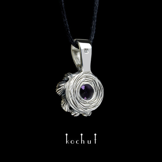 Pfingstrose — Anhänger aus oxidiertem Silber mit Amethyst und Vergoldung