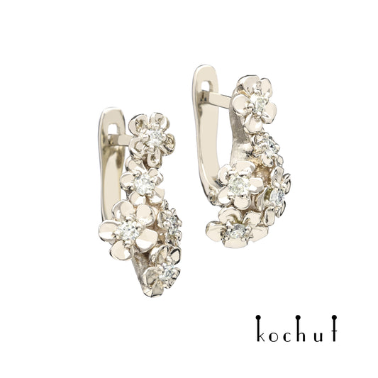 Florale Tiara — Ohrringe aus Weißgold mit Diamanten