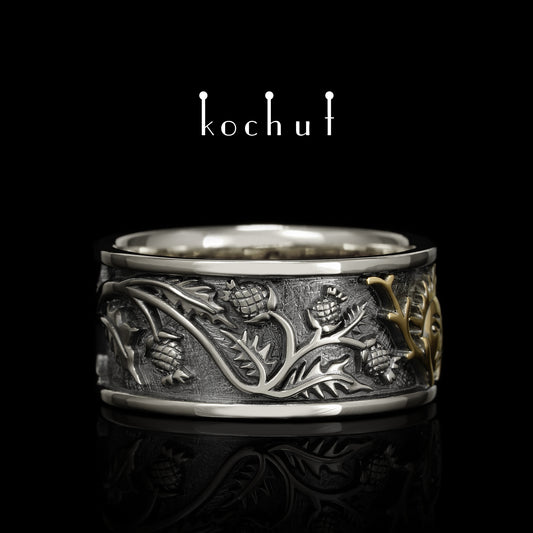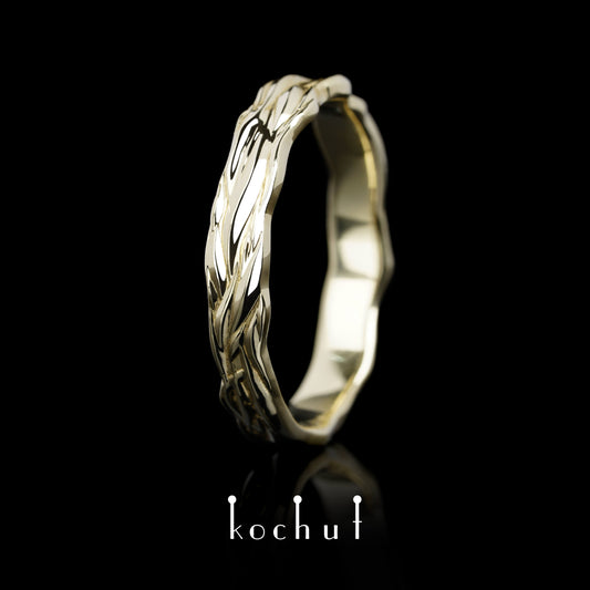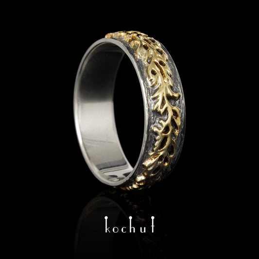 Wald — Ehering aus oxidiertem Silber und Gelbgold