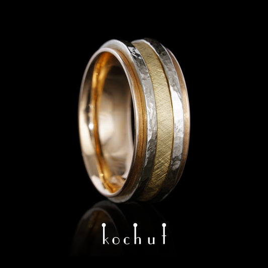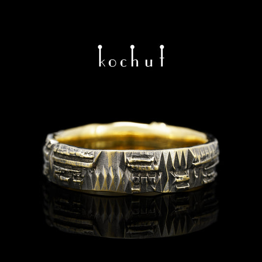 Alchemie der Liebe — Ehering aus oxidiertem Silber und Gelbgold