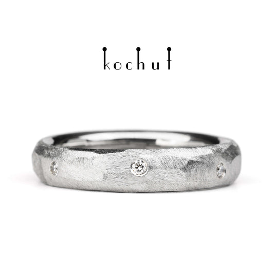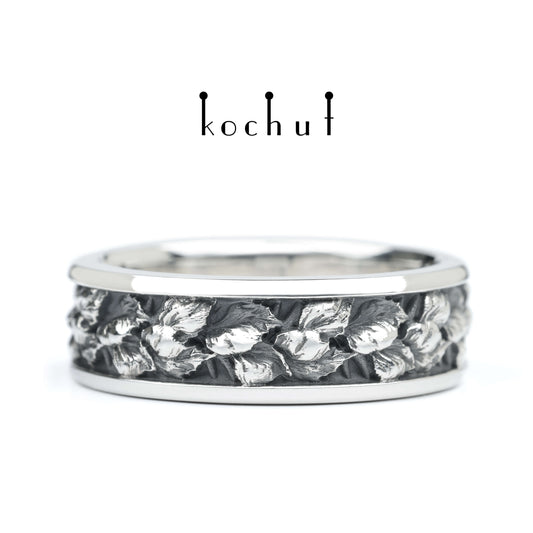 Steppe-Blume — Weißgold-Ehering, beschichtet mit schwarzem Rhodium