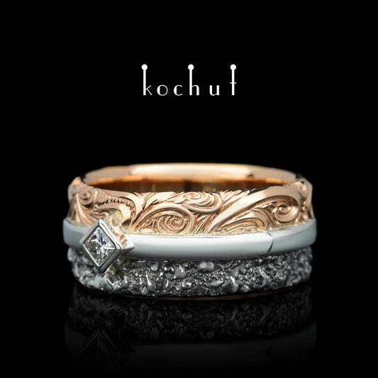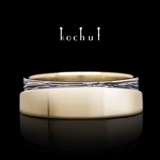 Unbesiegbarkeit der Gefühle— Ehering aus Silber, Gelbgold mit schwarzem Rhodium