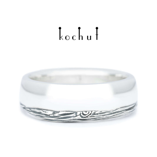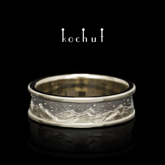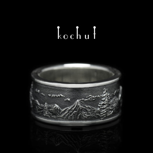 Berge mit Tannenbäumen — Ehering aus oxidiertem Silber