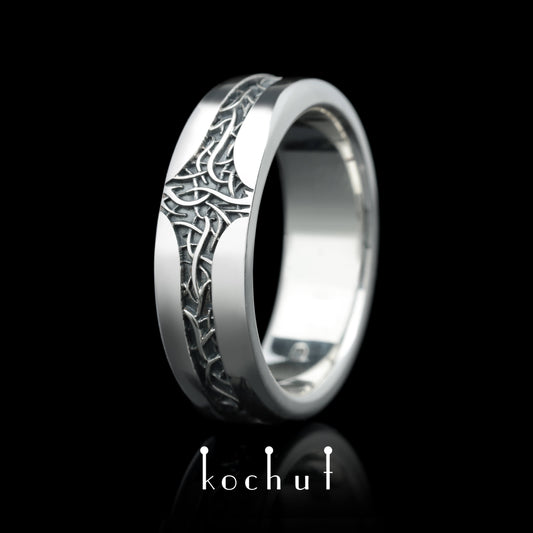 Baum des Lebens: Wurzeln — Ehering aus oxidiertem Silber