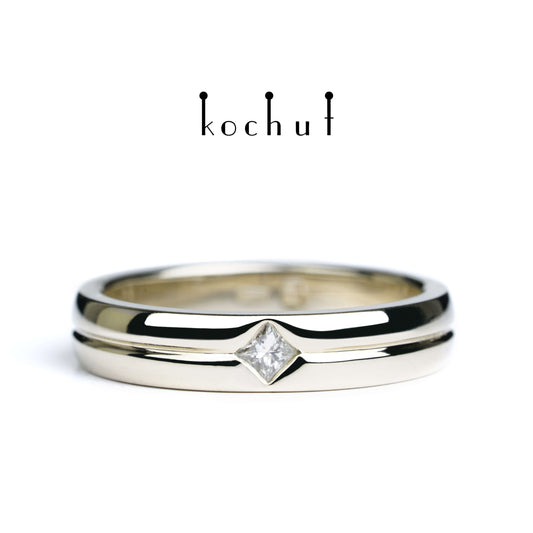 Achse der Liebe — Ehering aus Weißgold mit Diamant