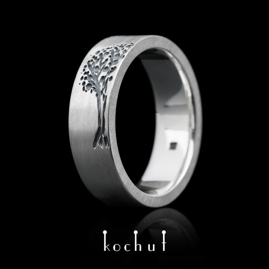Baum des Lebens: Halbringe — Ehering aus oxidiertem Silber