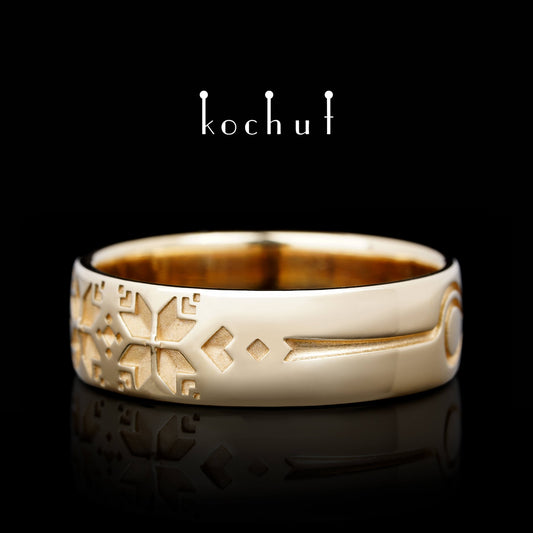 Alatyr mit Unendlichkeit — Ehering aus Rotgold