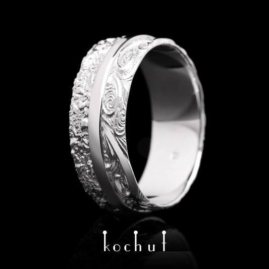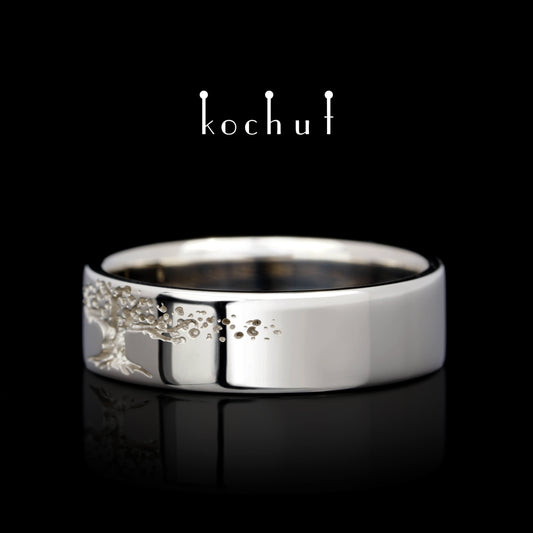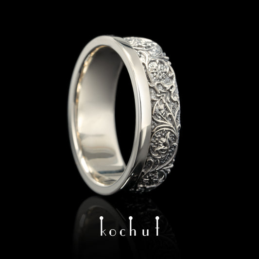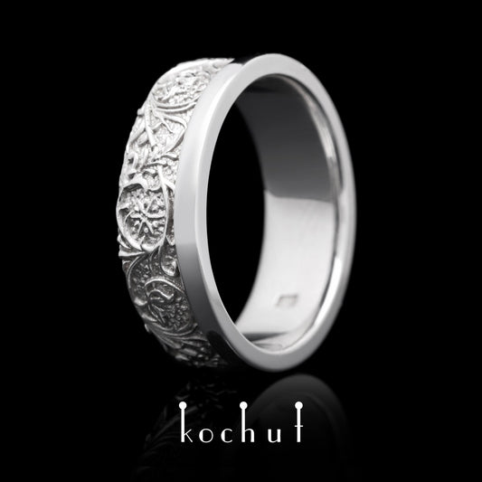 Harmonie der Natur — Ehering aus Weißgold, überzogen mit weißem Rhodium