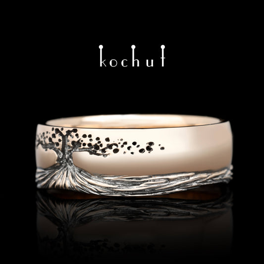 Lebensbaum: Wurzeln — Ring aus Rotgold mit schwarzer Rhodium-Beschichtung