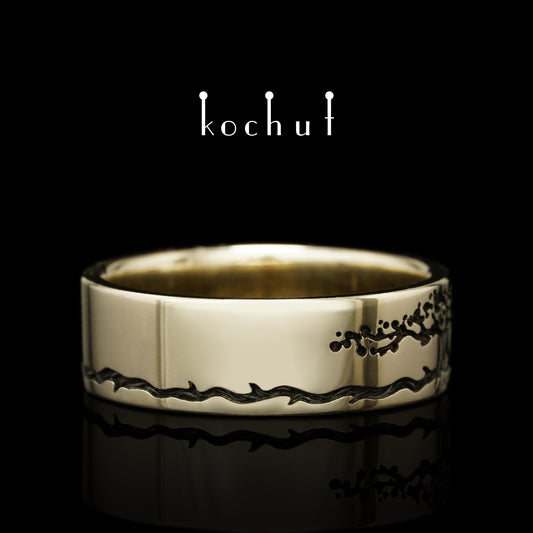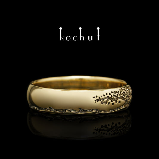 Baum des Lebens: Stiele — verengter Ehering aus Gelbgold, überzogen mit schwarzem Rhodium